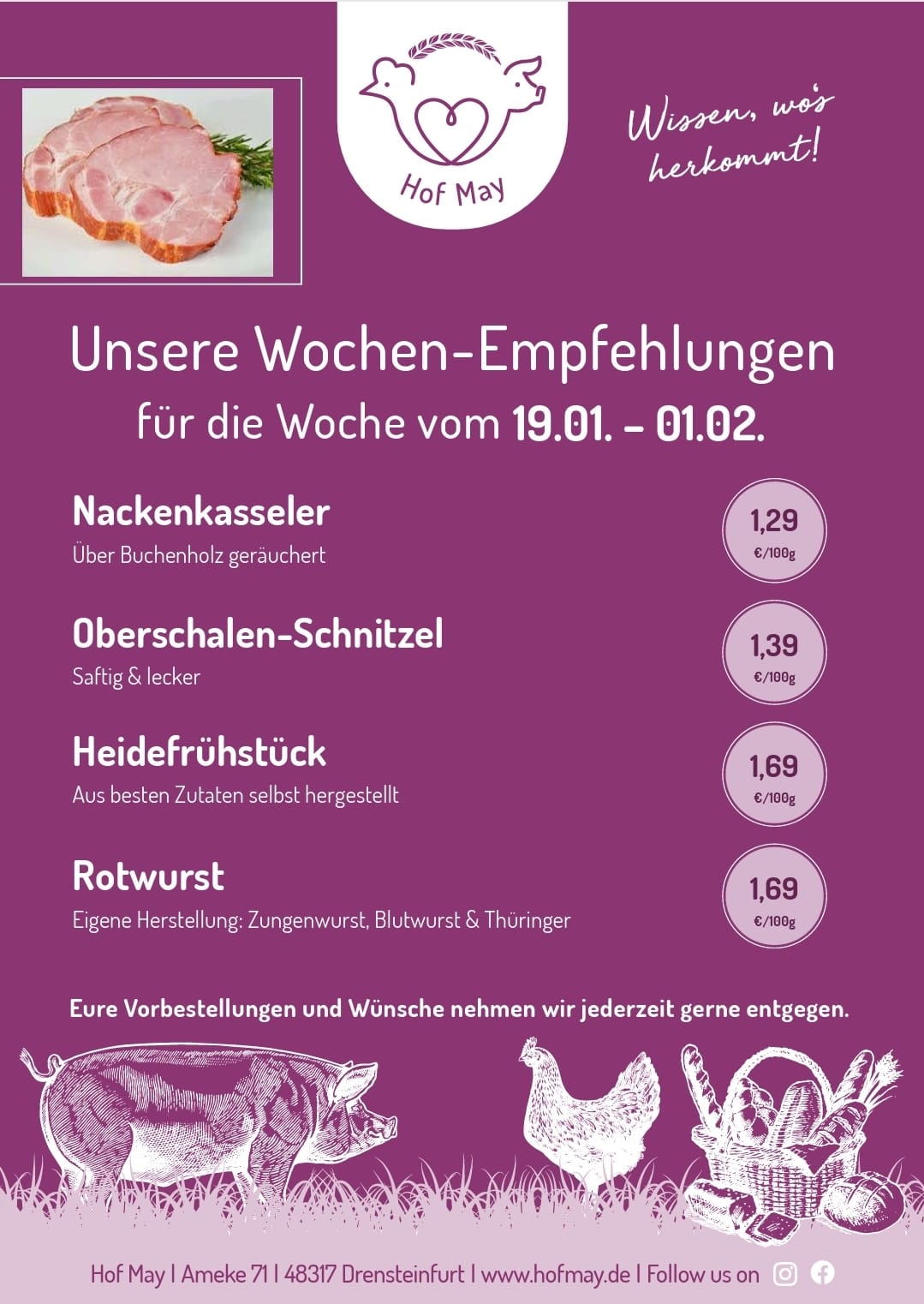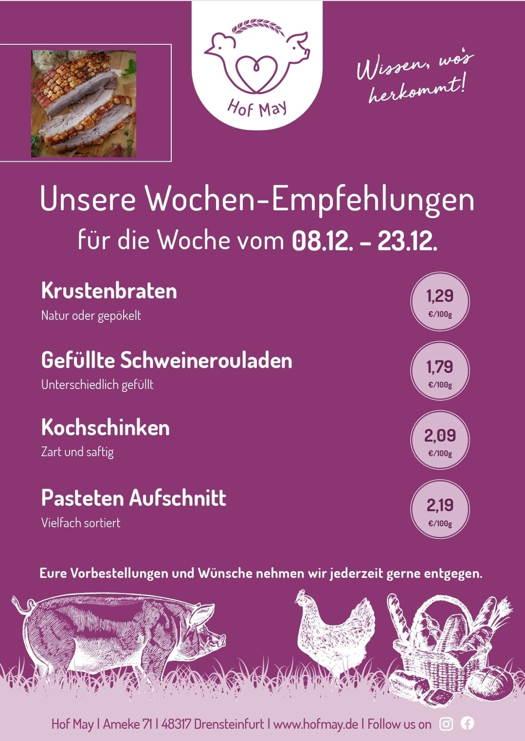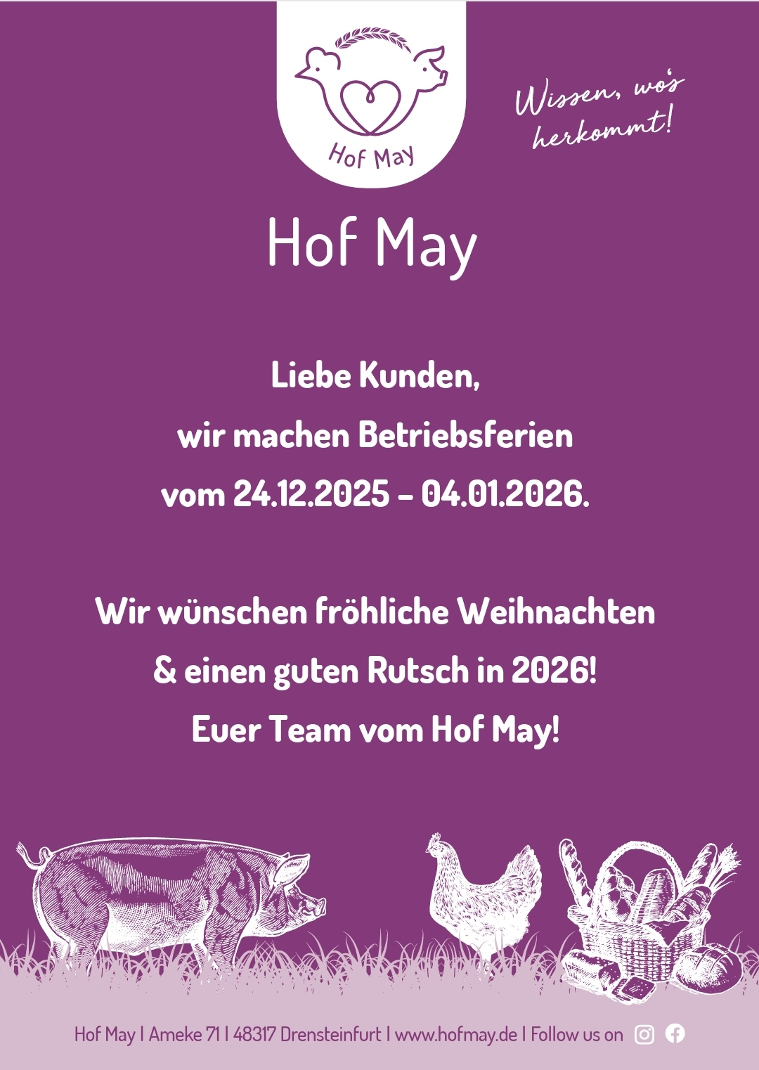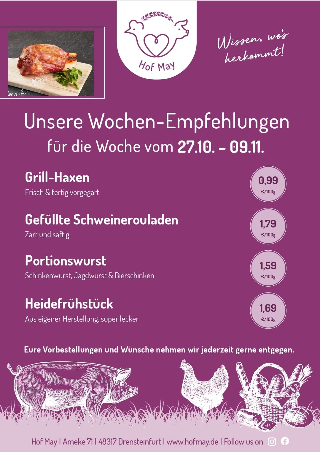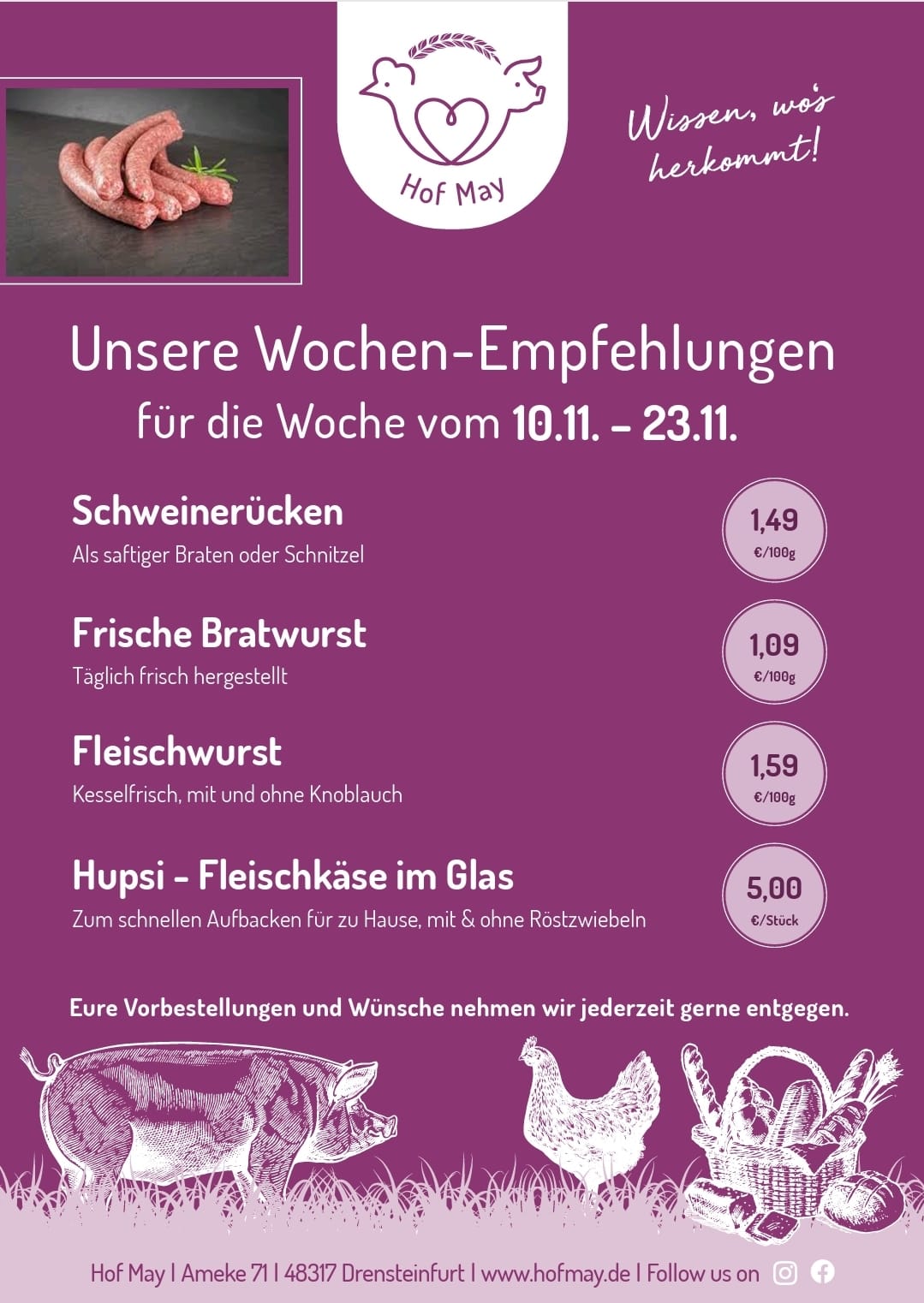 Den neuen Stall, unsere Hofmetzgerei, sowie den Hofladen und unsere gesamte Landwirtschaft könnt ihr natürlich und jederzeit live erleben. Kommt vorbei!